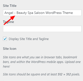 2. Now, type in your site’s title in the Site Title input. You can also type in a tagline below to set your site’s tagline.