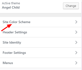 1.To change site’s primary color go to Appearance > Customize > Site Color Scheme and choose the color.