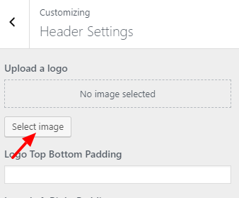 2. click Select image and upload the image you want to use as your logo.