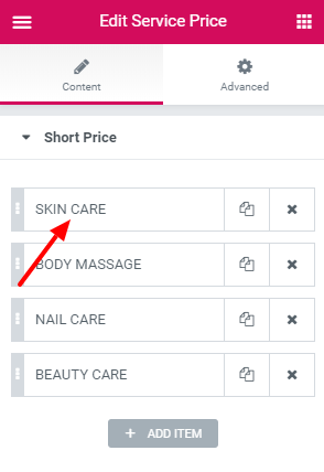 2. Next, click on the item you want to edit. You can even add or delete items here.