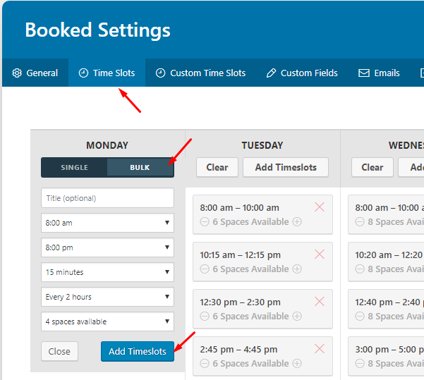4. Go to Time Slots > Now Setup Daily Time Slots for a Week by using Bulk. Set as you want or your demand.